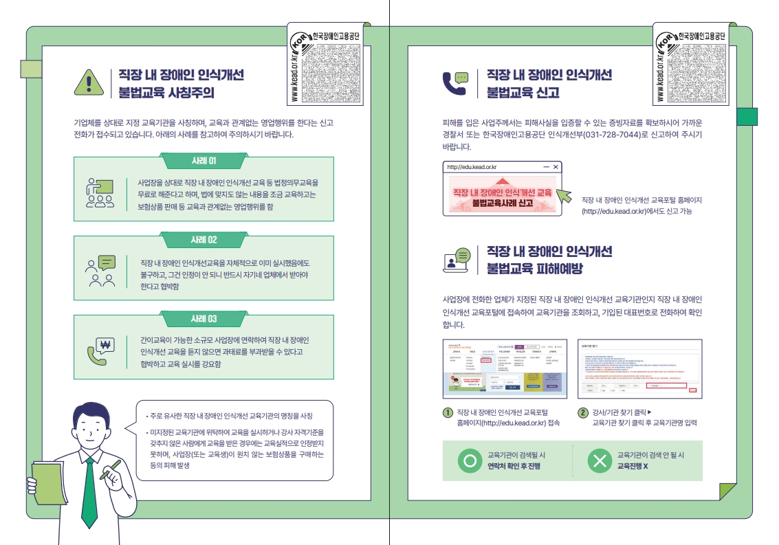 [한국장애인고용공단] 직장 내 장애인 인식개선 불법교육 주의 안내