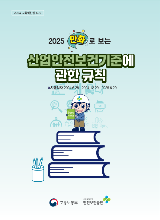 본 저작물은 안전보건공단에서 2024년 작성하여 공공누리 제4유형으로 개방한 '2025 만화로 보는 산업안전보건기준에 관한 규칙'을 이용하였으며, 해당 저작물은 안전보건공단(www.kosha.or.kr)에서 무료로 다운 받으실 수 있습니다.